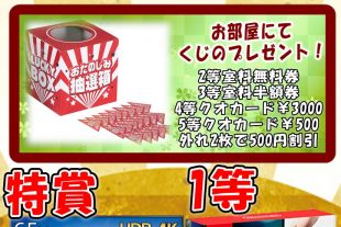 ☆正月三角くじ【全店イベント】 特賞 65インチテレビ 1等 任天堂スイッチ 2等 室