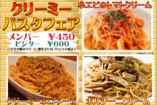☆クリーミーパスタフェア@ローズ 11月のイベントはクリーミーパスタフェア! メンバー450円ビジタ